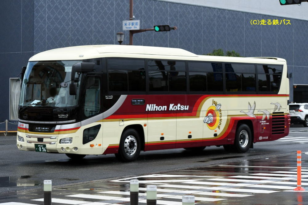 福知山駅前を出発する、福知山配属車「京都200か4421(日交930)」。