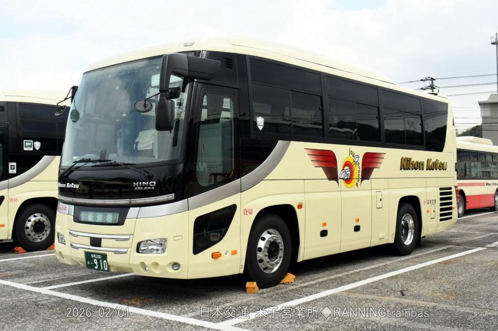 2025年暮れに納車後、2026年から稼働開始した日本交通の高速バス用新車「鳥取200か・913」。