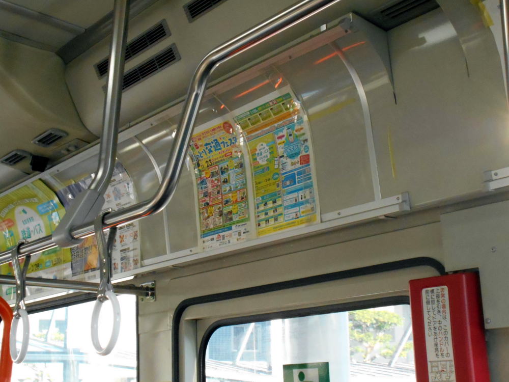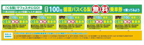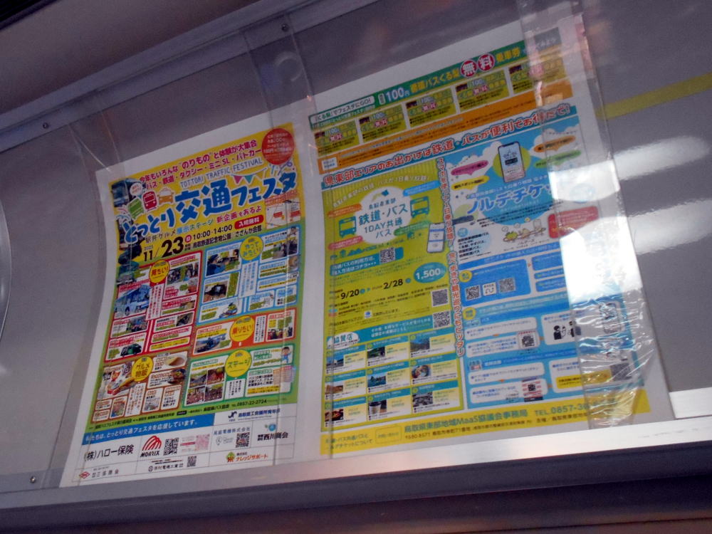「くる梨」車内に掲示された、「とっとり交通フェスタ」のリーフレット。フェスタ当日は、リーフレットに付いている乗車券で「くる梨」に無料で乗車出来ました。