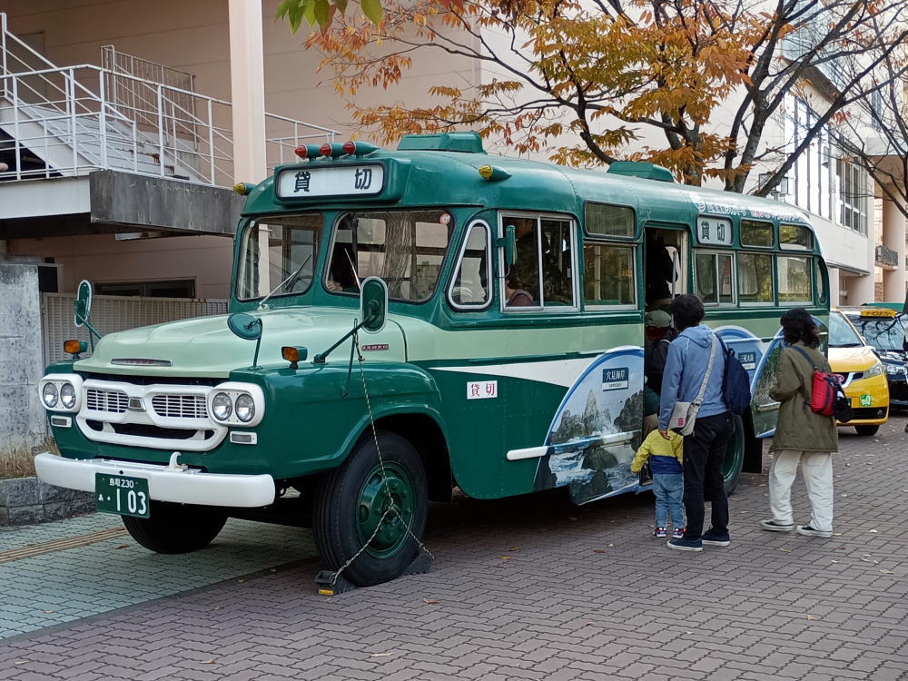 展示中の岩美町ボンネットバス。「とっとり交通フェスタ」には初参加でした。