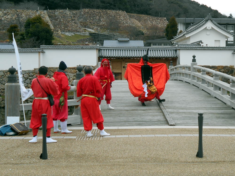 緑コースの経路である、お堀端通りはマラソンコースです。沿道の擬宝珠橋では、応援の麒麟獅子が準備していました。